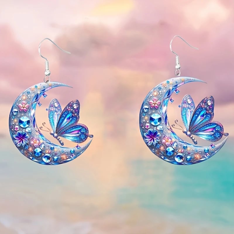 🌙🦋 Elegant Moon & Butterfly Dangle Earrings